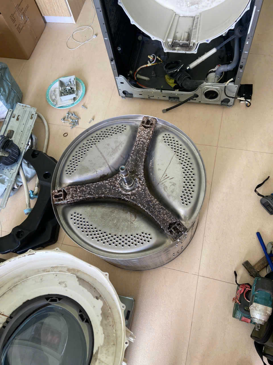 Tiến hành thay thế: Tháo rời lồng giặt, vệ sinh thùng máy và lắp đặt linh kiện máy giặt TPHCM chính hãng mới.